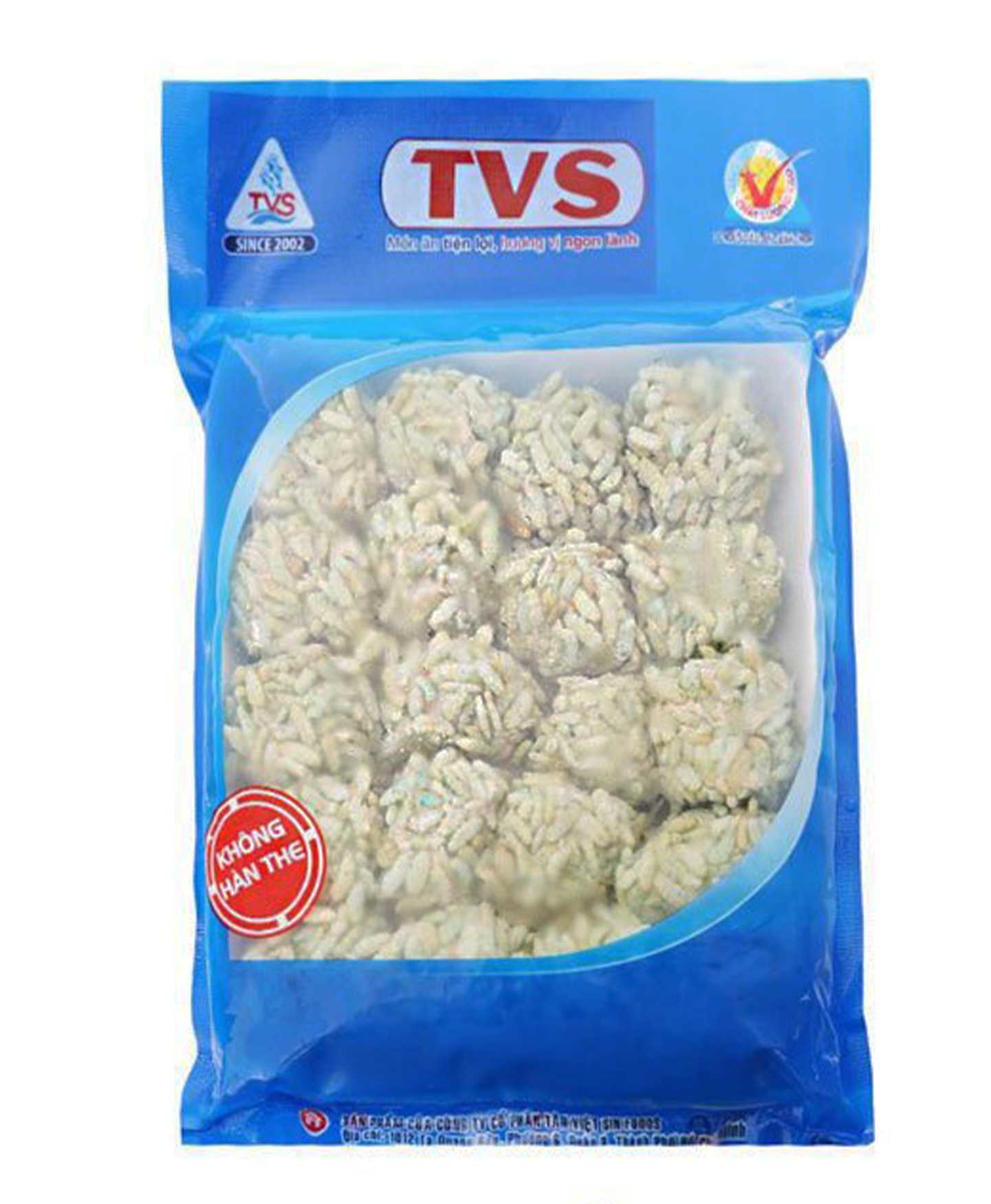Surimi basa (85%), cốm dẹp chiên (6%), đạm đậu nành, hành tím, tỏi, ớt, muối, đường, chất điều vị (INS 621), chất bảo quản (INS 200), chất ổn định (INS 450(iii), INS 451(i), INS 1414), chiết xuất nấm men.Thời hạn sử dụng và hướng dẫn bảo quản: