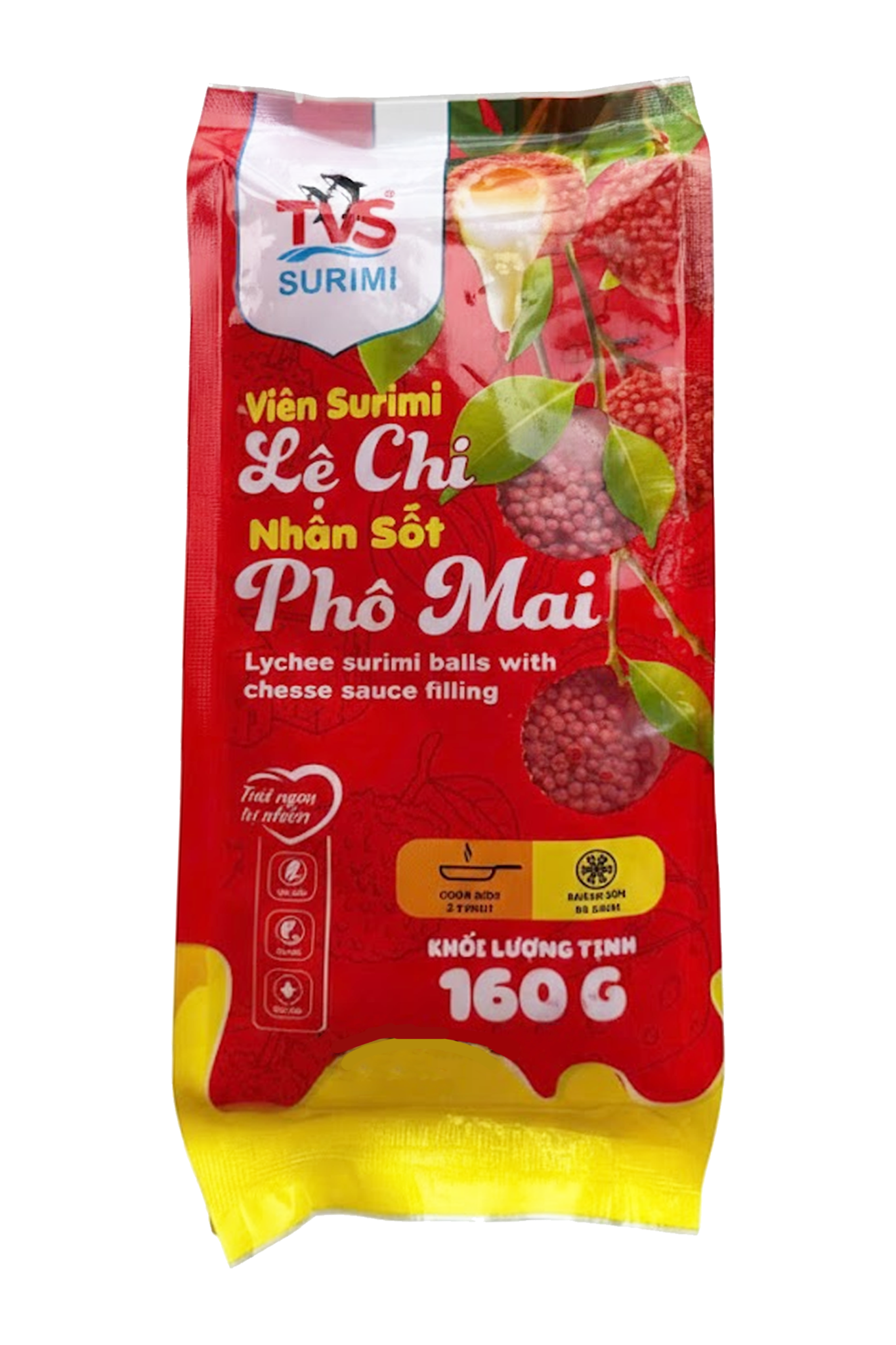 Surimi basa (31%), thịt cá chuồn (13%), phô mai (15%), hạt hoa giòn (bột mì, dầu thực vật, tinh bột bắp, phẩm màu tổng hợp (INS 170(i), INS 124), bột gạo đỏ lên men, muối ăn, hương tổng hợp, gia vị), tinh bột sắn biến tính (INS 1420), nước, muối, đường, chất điều vị (INS 621), chất bảo quản (INS 262(i), INS 282), chất chống oxy hóa (INS 316), chất nhũ hóa (INS 450(iii), chất ổn định (INS 451(i)), chất tạo phức kim loại (INS 451(i), INS 452(i)), chất tạo xốp (INS 500(ii)), chất làm dày (INS 407, INS 508), transglutaminase, chiết xuất nấm men.Thời hạn sử dụng và hướng dẫn bảo quản: